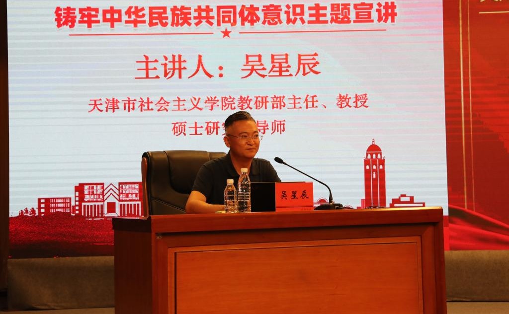 吴星辰以学习贯彻习近平总书记在全国民族团结进步表彰大会上的重要讲话精神开场,讲解了铸牢中华民族共同体意识的重要意义、深刻内涵和实践要求,回顾了党的民族工作的百年成就,介绍了历次中央民族工作会议召开的背景和特点,围绕“十二个必须”阐释了习近平总书记关于加强和改进民族工作的重要思想,引导广大师生要坚定不移走中国特色解决民族问题的正确道路。