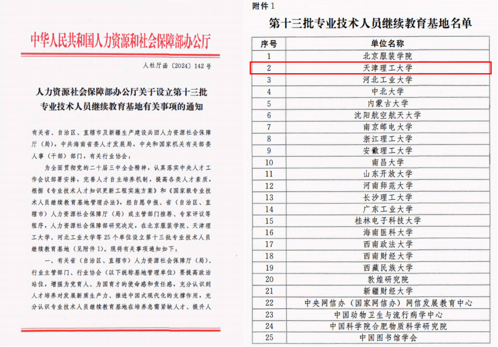 近日,人力资源和社会保障部办公厅发布《关于设立第十三批专业技术人员继续教育基地有关事项的通知》(人社厅函〔2024〕142号),米兰获批国家级专业技术人员继续教育基地。米兰是本批次天津市唯一获批的市属高校。