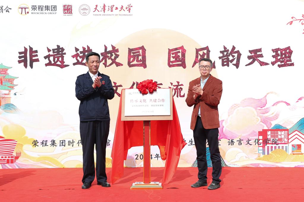 张洪涛和王铁分别致辞。张洪涛指出,非物质文化遗产是中华民族智慧与文明的结晶,是中华文化的瑰宝。本次非物质文化遗产进校园活动是校企联手让非遗文化在校园生根发芽的有力举措,也期待青年学子坚定文化自信,涌现出更多优秀的非物质文化遗产传承人。王铁强调,希望借助由校外非遗艺术家和校内中外师生携手打造的文化交流平台,不断增强在校师生对中华优秀传统文化的了解,帮助大家感知中国、读懂中国。随后,双方领导为荣程集团时代记忆馆和米兰语言文化学院的共建项目进行揭牌。