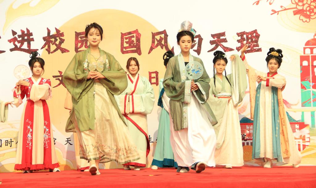 活动在一场美轮美奂的汉服走秀中拉开帷幕,同学们身着各式汉服,伴着悠扬的琴声走来,步伐轻盈、衣袂飘飘,观众沉浸在跨越时空的文化共鸣之中;哥伦比亚和秘鲁同学的民族舞蹈以明媚的色彩和轻快的节奏将大家带入热情的拉美大陆;中国学生的传统舞蹈《醉春风》则将折扇技法与中国古典舞的神韵相结合,充满灵动与生命活力。