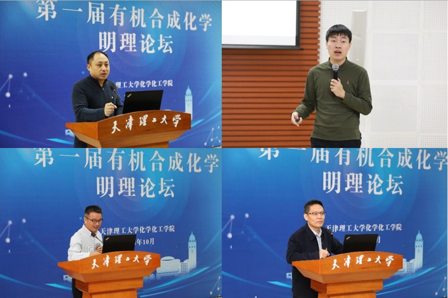 论坛中,12位专家结合有机合成化学的前沿研究分别作学术报告,分享了最新科研进展和成果。其中,上海交通大学教授朱晨作了题为“官能团转移自由基聚合(GTRP)”的学术报告;西湖大学副教授石航作了“过渡金属催化π配位活化芳香环研究”的学术报告;浙江理工大学教授徐新芳作了“金属卡宾的不对称催化反应”的学术报告;华南理工大学/浙江理工大学教授祝诗发作了“碳碳三键的多样性转化”的学术报告;北京大学教授宋颂作了“芳烃的选择性卤化反应”的学术报告;中国科学技术大学教授汪义丰作了“硼自由基催化的不对称反应研究”的学术报告;南开大学教授谢建华作了“手性螺环铱络合物催化不对称氢化反应研究”的学术报告;浙江大学教授李伟作了“苯环的去芳香1,2-加成反应”的学术报告;西安交通大学教授李鹏飞作了“兼具得失电子能力的硼物种与硼催化”的学术报告;天津师范大学教授李春举作了“联苯[n]芳烃可定制化大环分子的模块化合成及应用初探”的学术报告;南方科技大学副教授贾铁争作了“硫化学中的Chan-Lam偶联反应”的学术报告;天津大学教授马军安作了“化学与生物接力合成含氟手性氨基酸衍生物”的学术报告。