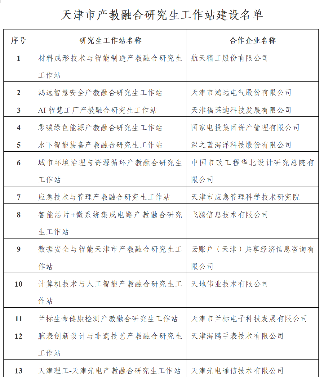 各培养单位已累计获批天津市产教融合研究生工作站建设单位13个,天津市高校专业学位研究生产教融合联合培养基地建设单位13个,天津市高校研究生教育校外创新实践基地建设单位3个。
