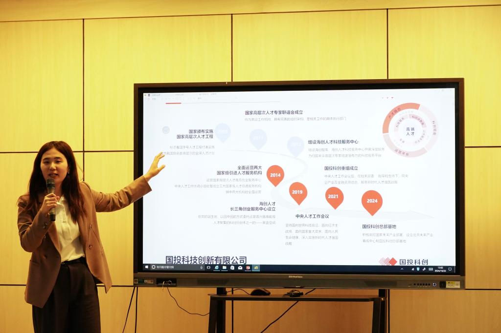 沙龙活动中,王柳介绍了国投(北京)科技创新有限公司的科创服务体系、科创服务方案、运行模式以及运行案例,并结合高校教师、高层次人才的创新创业实践,进行经验分享和专业指导,拓宽了教师们的创新创业意识和工作视野。