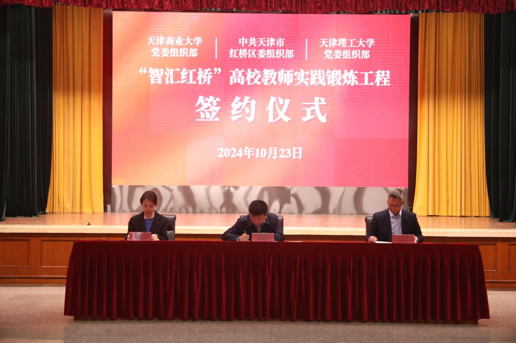 会上,党委组织部与红桥区委组织部签署高校教师实践锻炼合作协议。双方表示将进一步增进共识、紧密联系,在招才引智、科技创新、产业发展等方面加强合作,交流共建,打造校地合作新典范。