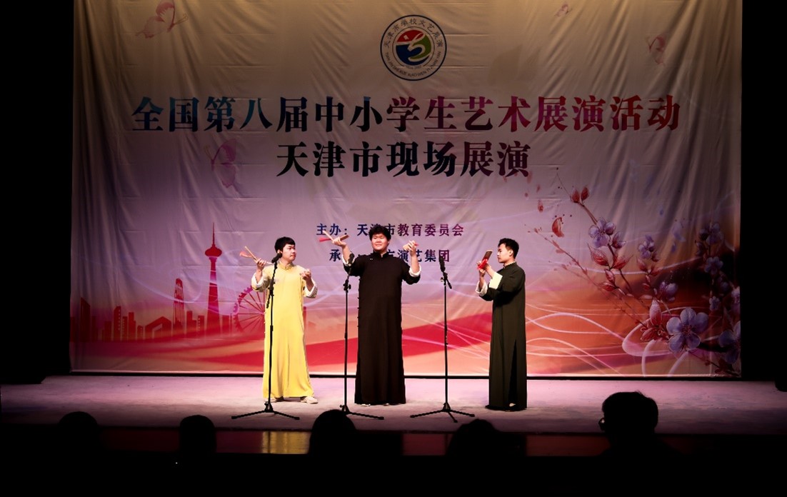 大学生艺术团鼓曲传习社带来的曲艺节目《重整河山待后生》简洁凝练、唱腔高亢、旋律错落有致,有气势有深度,巧妙地融入了京韵大鼓的唱腔,以歌传韵,自然亲切,让听众陶醉其中。