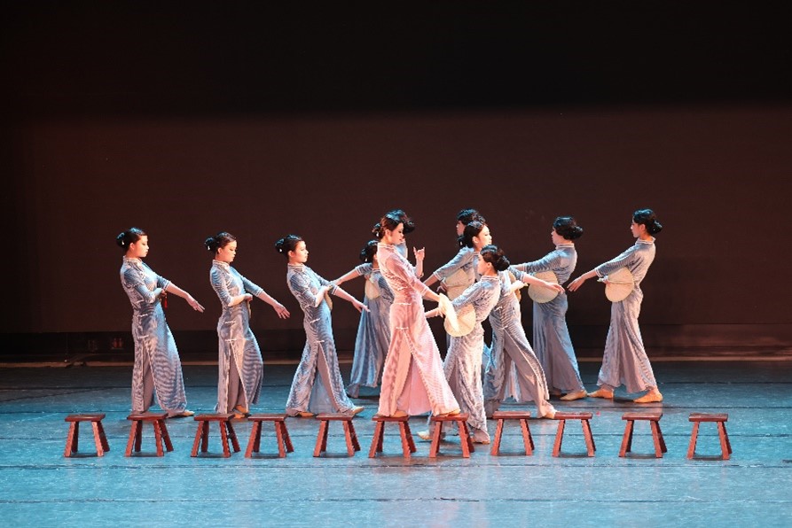 大学生艺术团舞蹈团表演的《云水伊人》通过表现似流水、似云烟的彝族女子形象,将水、云、人三者唯美交融。水是有形之水,云是有意之云,人是有情之人。银饰青衣、黛眉高髻的女子与流水云烟勾勒出一帧帧美学意象。