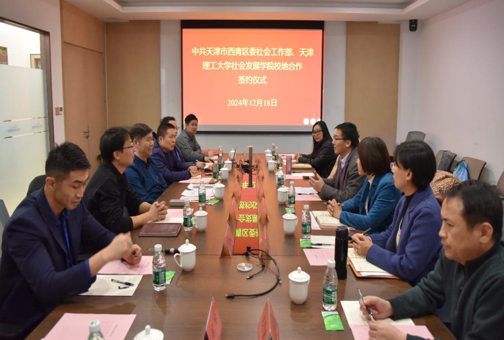 参观结束后,三方围绕校政企合作、产学研融合、科研项目共建、就业创业等工作进行了座谈交流。赵金玺首先对米兰milan官方网站一行到访表示热烈欢迎,他表示希望双方在示范点位打造、课题研究等关键领域深入交流,整合优势资源、群策群力深入探讨提升西青基层治理水平,开创社会治理理论及实践新局面。天津鹏瑞利集团中国区养老副总经理张抗抗介绍了集团在居家养老服务、医疗专家人才支撑、微养健康管理小程序运行以及健康商旅城一体化管理等方面的经验做法,表示学校相关专业领域同公司发展高度契合,愿协同发力合作,共创养老事业新标杆。苏荣华介绍了学校发展历程和社会发展学院专业学科特色和生源情况,表示学校始终坚持大开理工之门,坚决落实学校党委七新发展思路和跑五做法,致力于同西青区委社工部、鹏瑞利集团搭建起坚实的合作桥梁,在人才培养、科研合作、就业创业、社会服务等多个维度开展广泛合作,实现优势互补共建共享,不断为人才培养、校地合作深度融合、推进融教育促进专业学科发展注入新动力。