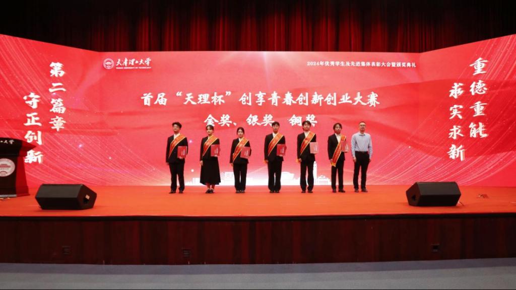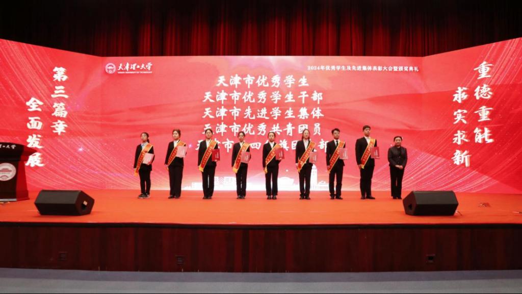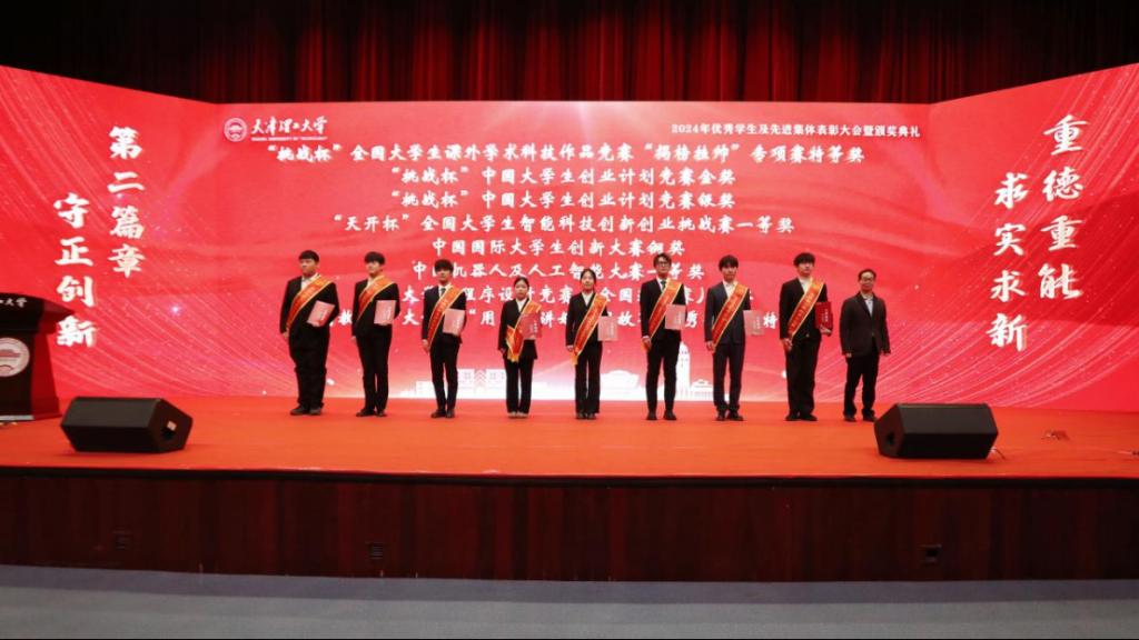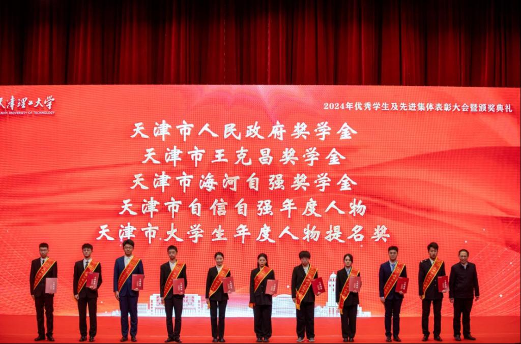 校党委副书记、校长练继建为天津市人民政府奖学金、天津市王克昌奖学金、天津市海河自强奖学金、天津市自信自强年度人物、天津市大学生年度人物提名奖获奖代表颁奖。