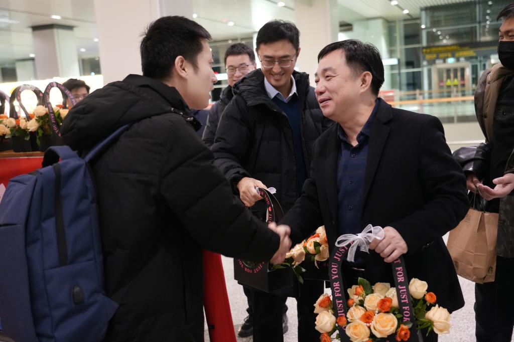12月30日,学校2024年援疆实习支教团54名师生圆满完成各项工作任务,从新疆和田地区民丰县平安抵津、载誉归来。党委常委、副校长叶宁,党委学生工作部及各学院相关负责同志前往天津滨海国际机场迎接支教团师生,举行简短而温馨的迎接仪式,并献上鲜花表达崇高敬意。