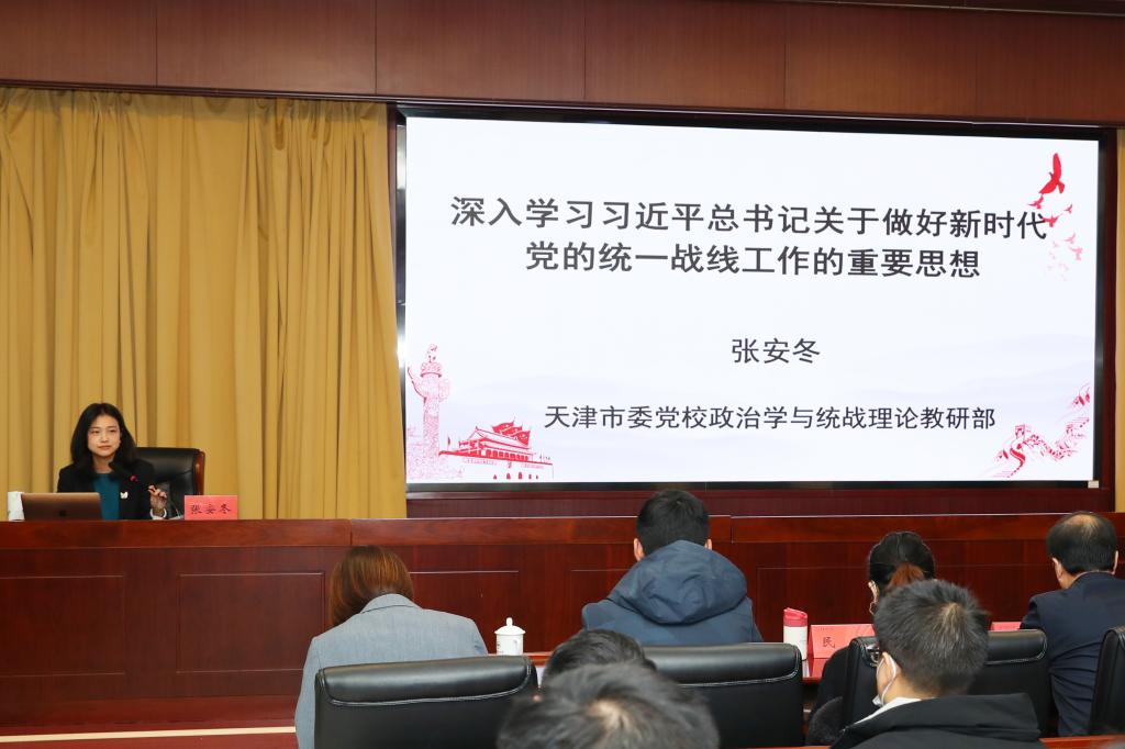 此次培训班邀请市委党校政治学与统战理论教研部副教授张安冬以《学习贯彻习近平总书记关于做好新时代党的统一战线工作的重要思想》为题开展讲座。她围绕准确把握新时代爱国统一战线的历史方位、深刻领会习近平总书记关于做好新时代党的统一战线工作的重要思想核心要义及围绕中心服务大局画出最大同心圆三个方面,细致解读了习近平总书记关于做好新时代党的统一战线工作的重要思想,进一步强化学员们在新时代新征程中凝心聚力,奋力谱写统一战线事业新篇章的责任与使命。