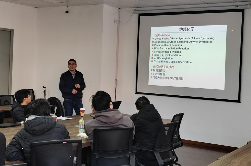 叶龙武作了题为《基于炔烃不对称催化转化的手性氮杂环合成》的学术报告。他从手性氮杂环的重要性展开讲述,详细介绍了其团队发展基于炔酰胺等杂原子取代炔烃的手性金属催化、手性有机酸催化、手性有机碱催化和可见光催化等催化新模式,为系列重要手性氮杂环的结构多样性合成提供了新方法、新策略和新途径。