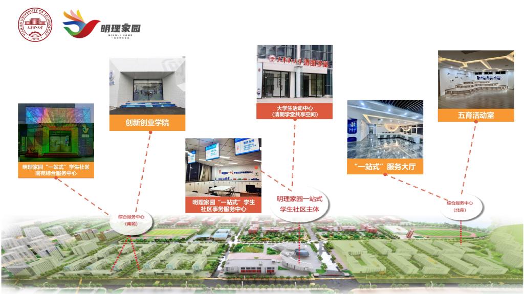 明理家园“一站式”学生社区作为新时期大学生思想政治教育和人才培养的重要载体,以领航铸魂、社区蓝图、力量引育和数字赋能四项工程赋能社区精准育人。打造“一体两翼多元”的社区空间布局,即以大学生活动中心为主体,南北苑综合服务中心为两翼,智慧服务驿站、辅导员工作室、值班室等多元化服务场所遍布其中,为全校学生提供党团引领、心理辅导、学业帮扶、日常事务等多功能便捷服务,年累计接待服务师生达2万人次。社区建设经验在国家级专项工作论坛上作交流分享并得到广泛推广,相关经验及品牌活动获得中国教育报、高校思政网等主流媒体推广报道。
