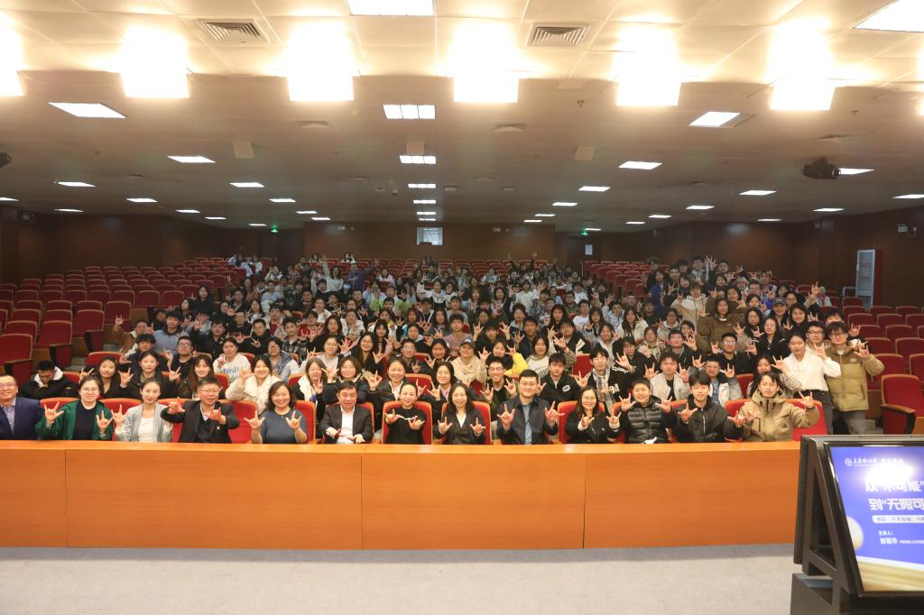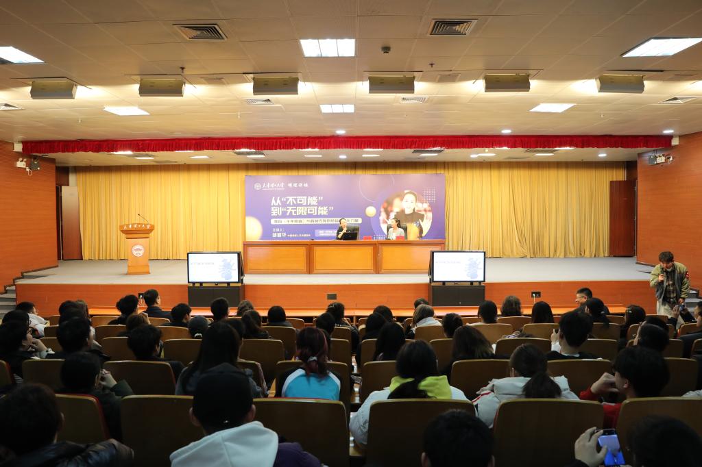 报告会前,叶宁为邰丽华颁发了聘书。邰丽华带领大家回顾了中国残疾人艺术团成立38年来的发展历程。她表示,从最初的仅有几名成员,到如今登上联合国总部、北京奥运会、央视春晚等国际舞台的“特殊艺术名片”,艺术团始终以“展现生命的尊严与价值”为使命。她特别提到舞蹈《千手观音》的创作故事。21名听障演员通过手语老师的指挥和地面的振动感知节奏,以千余次排练达成精准配合,最终在2005年春晚惊艳世界。她还分享了人工智能技术如何推动艺术普及与无障碍传播。作为顾问,她与团队一起让今年蛇年春晚的无障碍转播覆盖全国31个省份,为艺术插上翅膀,让更多“不可能”成为可能,引发广大师生共鸣。