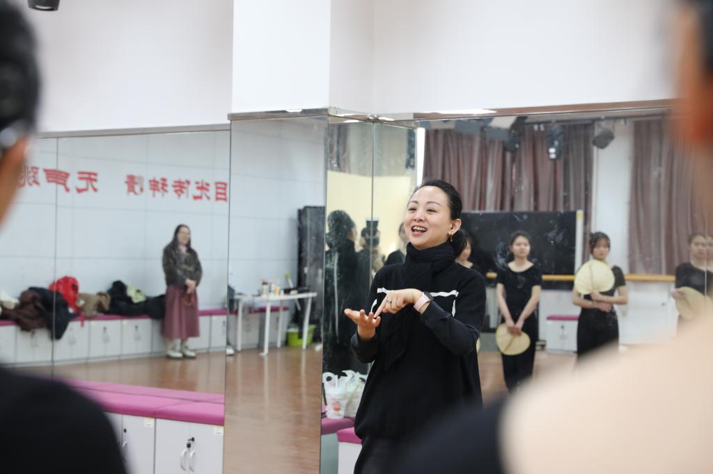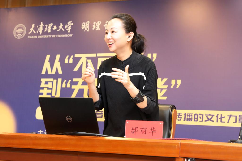 面对在场的同学们,特别是听障大学生,邰丽华鼓励大家勇敢突破自我,珍惜大学时光,善用学校提供的无障碍教育资源,在专业领域探索个人价值。她在现场示范了如何通过肢体语言传递情感,并与学生互动交流,气氛热烈。