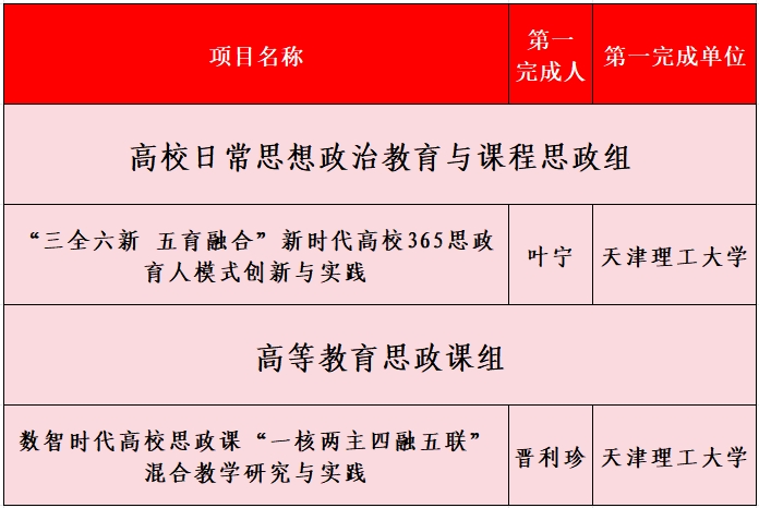 近日,市教委印发《关于公布天津市教学成果重点培育项目(思政专项)立项的通知》,学校获批2项天津市教学成果重点培育项目(思政专项)。