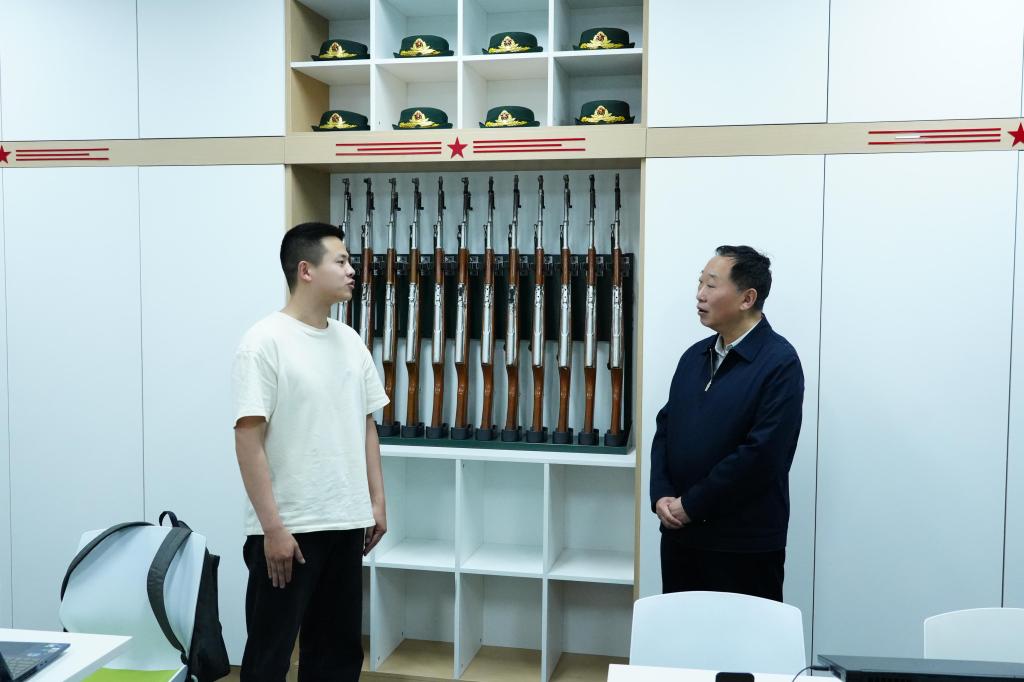 殷向杰实地察看了学校国防教育文化长廊建设情况,听取了“场域建设+制度创新+队伍建设”三位一体武装工作体系的介绍,深入了解了“三室一库一家”标准化建设成果和“三英”国防后备人才梯队建设情况,并就兵员征集预储、征兵政策落实、学校“三英”特色团队建设等,与在校退役士兵大学生进行亲切交谈,对同学们退役后保持军人作风、发挥示范带动作用给予充分肯定。殷向杰指出,高校学生是建设世界一流军队的重要人才资源,高校要坚持为党育人、为国育才,做好兵员预征预储工作,引导青年学子自觉把个人理想融入强国强军伟业。修改征兵工作若干规定,要把高等学校在兵员预征预储工作方面好的经验做法转化为法规规定,为进一步提高兵员征集质量提供法治保障。调研过程中,同行的军地领导肯定了米兰在征兵工作中取得的优异成绩,对后续开展兵员动员和国防教育工作提出了宝贵的意见建议,并就学校进一步加强军校协同和项目联建帮建给予了指导。