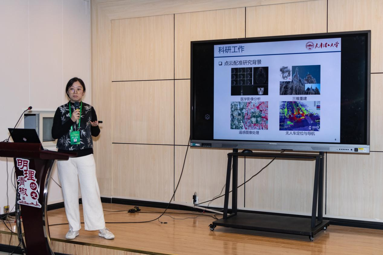 崔文婷作题为“基于RGB-D特征匹配的点云配准方法”的报告。她介绍了点云配准算法的改进与应用,并探究了未来的发展方向和交叉学科的结合。