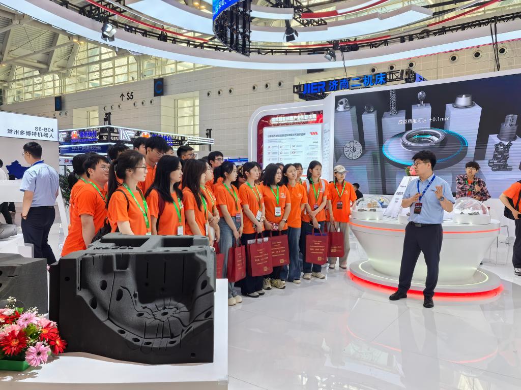在参观环节,与会师生实地学习了3D打印精密铸造工艺、智能化砂型铸造生产线等前沿技术,近距离观摩了港珠澳大桥海底沉管隧道铸件、大飞机发动机关键部件等“大国重器”实物展品。曾经以抽象工艺图形式呈现的铸造知识,在眼前的智能制造场景中变得真实可感、触手可及。这种从理论到实践的跨越,使学生们真正了解了专业背后的产业价值,也点燃了同学们的专业学习热情。大家纷纷表示,此次学习实践活动收获颇丰,自己未来的职业发展方向更加清晰。