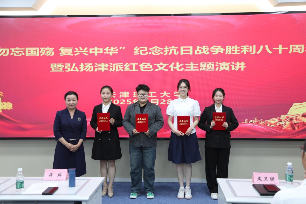 主题演讲活动由校团委和马克思主义学院共同主办。活动面向全校本学期开设《中国近现代史纲要》课程的33个教学班,旨在对大学生进行爱国主义教育。活动内容突出了“九一八”事变至抗日战争胜利期间中国共产党发挥的中流砥柱作用,展现了在中国共产党领导下津沽大地涌现出来的典型抗战事例,进一步弘扬津派红色文化。复赛共有35组53名同学参加角逐,分别以《津门风骨——抗战岁月里的精神之光》《莲花峰上真君子,盘山路里家国情——纪念盘山游击战争》《浴血山河映初心 中流砥柱耀津门》《水楼檐角听风雷:从津门故里到山河脊梁》《从北大营到平津线——中国共产党领导下的全民抗战与津沽壮歌》等题目进行精彩演讲,生动讲述了中国共产党人引领津沽大地抗战的非凡故事,凸显了中国共产党在全民族抗战中的重大贡献,激发了广大学生爱党爱国之情。最终评出一等奖4个、二等奖5个、三等奖7个、优秀奖15个。