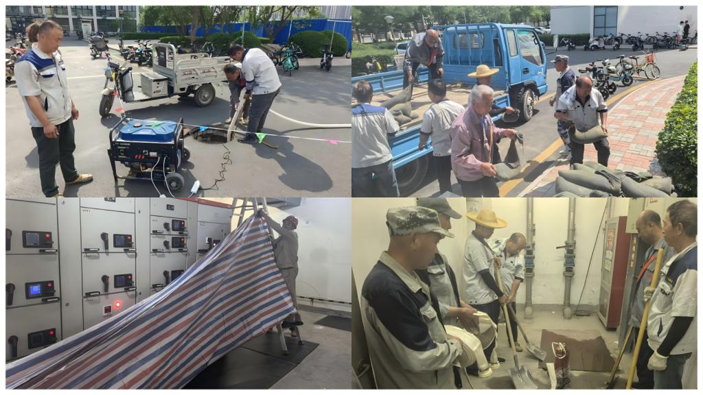 当物业人员巡查时发现地下室突发雨水倒灌现象,应急抢险组立即从远端切断电源,避免触电风险。后勤工作人员迅速搬运防汛挡板、沙袋,在出入口处搭建牢固挡水屏障,同步启用抽水泵对积水进行抽排。整个环节分工明确、动作迅速,展现了汛期初期险情的快速控制能力。