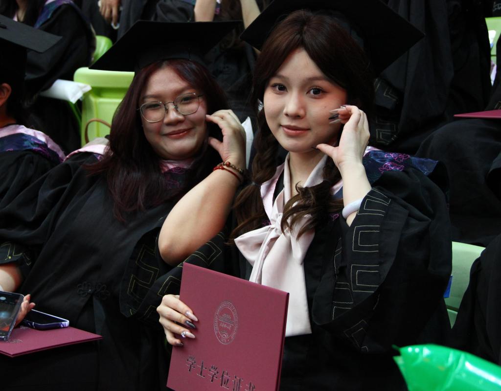 毕业典礼后,学校为毕业生举行了庄重而温馨的学位授予仪式。校院领导于主席台前依次为毕业生拨动学位帽穗,象征着学子们圆满完成学业征程。随后,领导们与每位毕业生亲切合影,用镜头定格这一重要的人生时刻,为校园时光画上圆满句点。