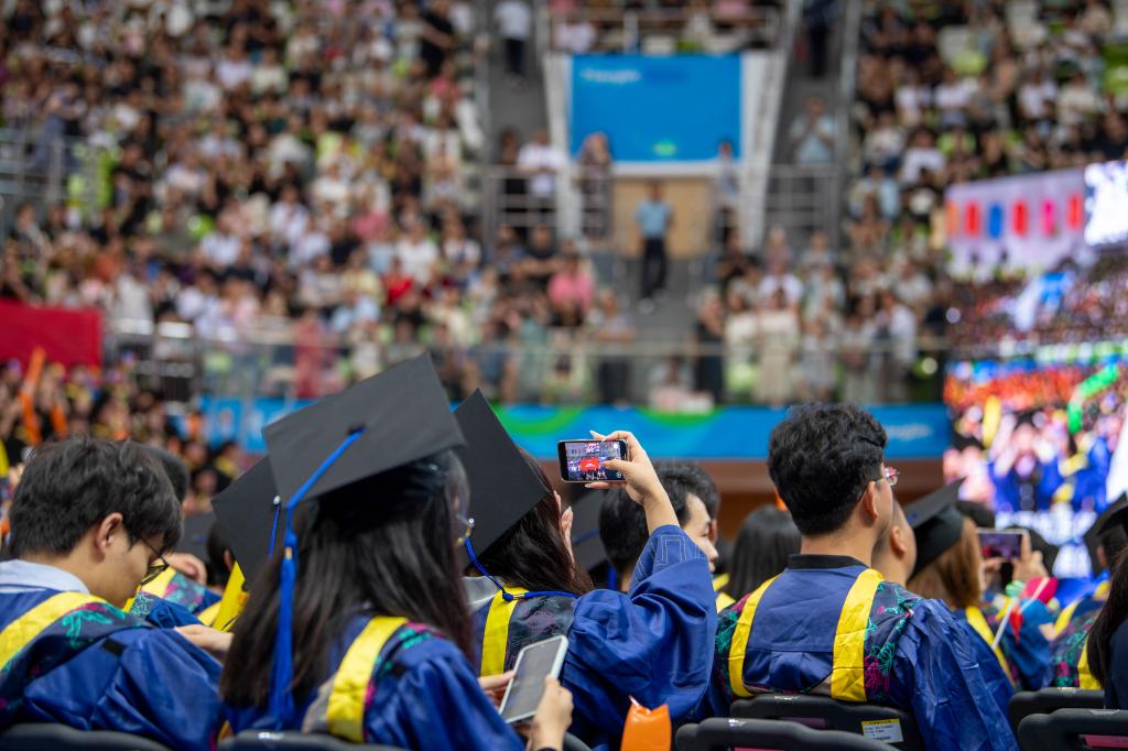 6月19日,学校2025年学生毕业典礼暨学位授予仪式在体育馆举行。校领导练继建、陈胜勇、王铁、冯骅以及相关部门、各学院主要负责同志出席,并为获得学位的毕业生拨正流苏。毕业典礼由党委常委、副校长叶宁主持。学校2025届本科生及研究生毕业生、家长代表、校友代表共计4800余人参加了本次活动。