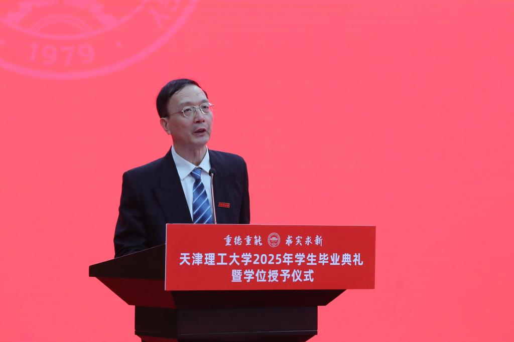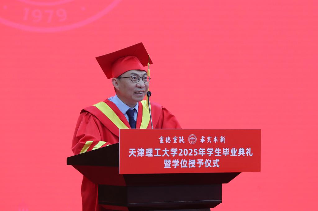 教师代表、全国模范教师、首届天津市十大杰出津门学者、天津市有突出贡献专家、电气工程与自动化学院周雪松教授以大学四年时光为轴,深情回顾了“米兰母子”同心共克时艰——播种心怀丘壑眼存山河之志、携手抢拓书山学海——涵养文心墨痕工理经纬之识、并肩深耕明理沃土——淬炼求实问道求新求变之能、凝眸硕果盈枝——厚植重德重能胸怀家国之情的感人场景。周教授的发言饱含对教育事业的热忱,深深打动了在场的每一位师生。