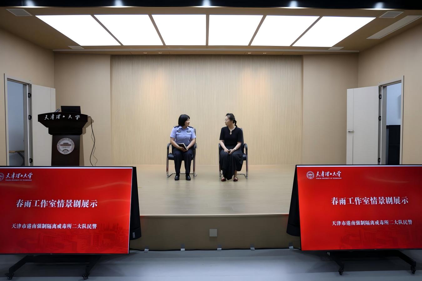 港南强制戒毒所三位民警为同学们展示了结合日常工作创作的情景剧,生动还原社区矫正、社区戒毒、社区康复等基层工作场景。张斌警官以“防毒、拒毒,‘药’知道”为主题,开展易制毒药品管理专题讲座,讲解传统毒品与新型毒品的种类,青少年成瘾的原因,教育引导师生远离毒品。
