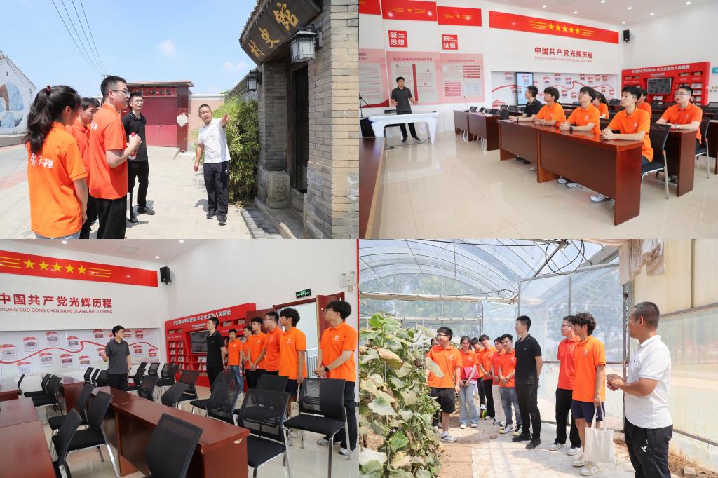 实践团走进运河文化村落李大人庄村,参观村史馆,传承红色基因;走在青龙湖畔,了解高端民宿集群(庭院观景、亲子乐园、大棚采摘)带动村民就业增收的新型运营模式;在下沉式智能大棚,体验现代农业技术下的高品质农产品;走进党建服务中心,了解了“党建+乡村旅游”发展模式,体验了VR智慧党建平台,“云体验”全国各大红色展馆。