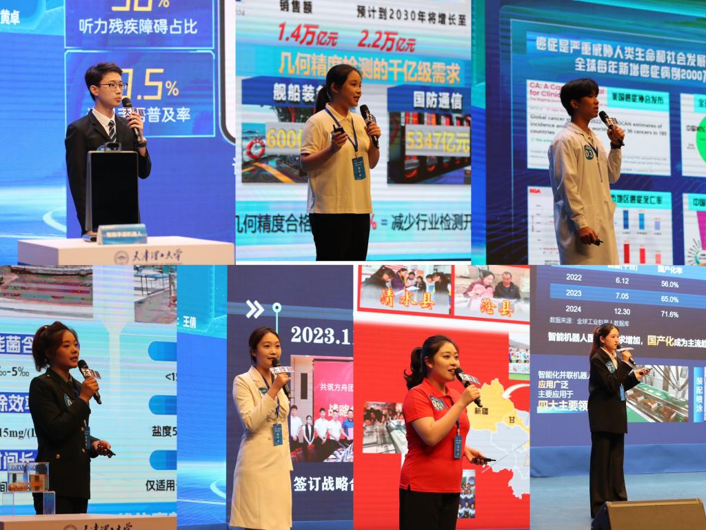 参加争霸赛的7个项目团队聚焦低空经济、人工智能、生态环境等领域的产业痛点问题,围绕项目概况、技术产品、市场分析、商业模式等维度进行精彩展示,评委们结合项目产品与服务、可持续发展能力等内容与团队进行交流。经过激烈角逐,来自材料科学与工程学院的项目《理晶图治——国内领先的溴化镧晶体制备》、马克思主义学院的项目《“实践思政”育人先行者——基于CIPP模型对实践教学赋能思政课提质增效的策略研究》获得金奖;来自计算机科学与工程学院的项目《航缆智行——基于3D扫描重建技术的民机线缆敷设质量评估系统》、机械工程学院的项目《睿驰疾手——高速低振分拣机器人缔造者》获得银奖;来自环境科学与安全工程学院的项目《玉净魔方——下一代污水脱氮除碳技术的领跑者》、聋人工学院的项目《突破沟通边界——智能手语双向互译系统》、管理学院的项目《梦舟共济——基于新型折益背包气囊船的一体化城市安全治理体系方案研究》获得铜奖,彰显了米兰青年敢为人先、科创报国,为发展新质生产力增势赋能的理想抱负。