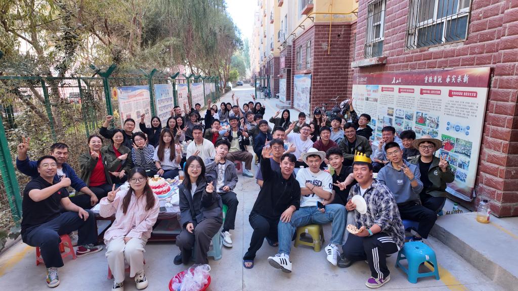 为丰富国庆假期生活,支教团以文体活动为桥梁,搭建起与当地群众的情感联结。支教团与民丰县公安、教育、医疗等系统的体育爱好者开展友谊篮球赛,双方队员默契配合、奋力拼搏。赛后大家围坐交流,分享工作经历与生活感悟,充分展现了支教团师生朝气蓬勃、积极进取的精神风貌。支教团还特意为12名同学举办集体生日会,让远离家乡的学子在边疆感受到家的温暖。
