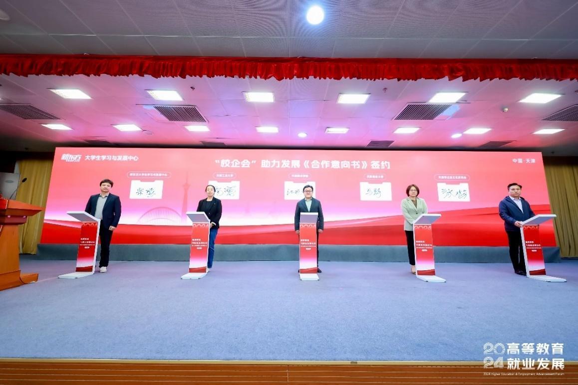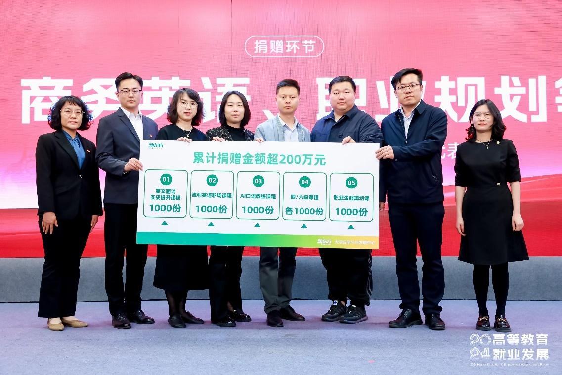 在论坛上,新东方与市企业文化研究会及多所高校签订大学生就业发展合作意向书,并向市青年创业就业基金会和米兰及天津师范大学、天津工业大学等6所高校捐赠6000份精品课程资源。