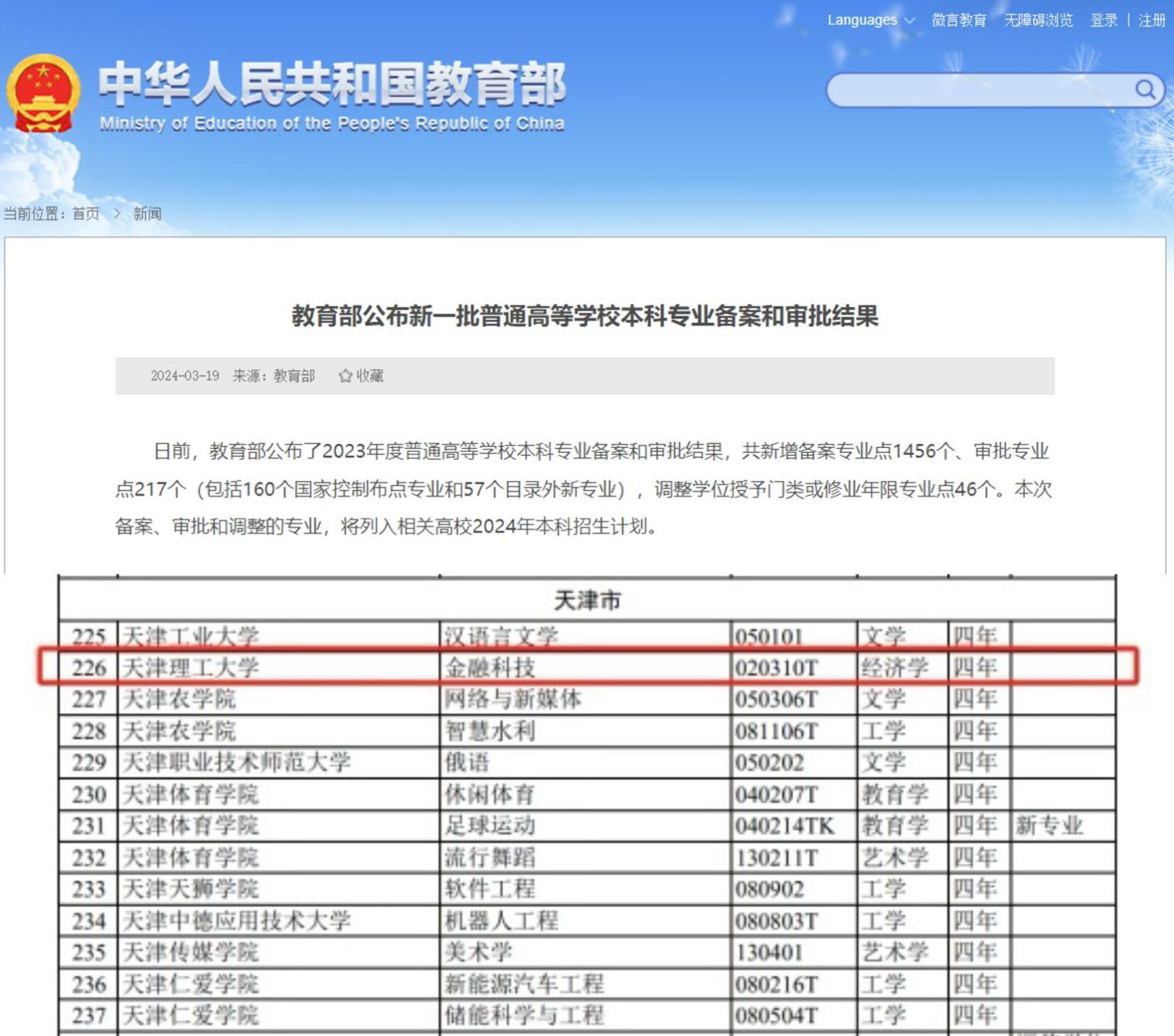 日前,教育部公布了2023年度普通高等学校本科专业备案和审批结果,米兰管理学院申报的金融科技专业获教育部备案,准予设立,并纳入学校2024年招生计划。