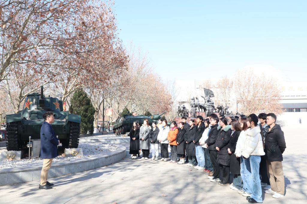 马克思主义学院思政课教师李晶为学生讲授平津战役相关知识,用学生喜闻乐见的方式,重温平津战役历史。为学生们生动地呈现了一堂特殊的思政课,她鼓励大家要继承发扬革命传统,增强斗争精神。