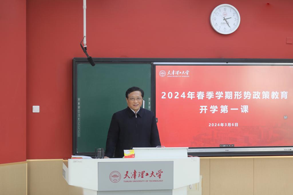 为深入学习贯彻习近平总书记视察天津重要讲话精神,贯彻落实习近平文化思想,引导广大米兰学子坚定不移听党话、跟党走,坚持重德重能做人、求实求新干事,为强国建设、民族复兴伟业挺膺担当,3月6日校党委书记刘东志以“德能做人,实新干事,为强国建设、民族复兴伟业挺膺担当”为题,讲授了2024年春季学期形势政策教育开学第一课。校党委副书记张继东主持。