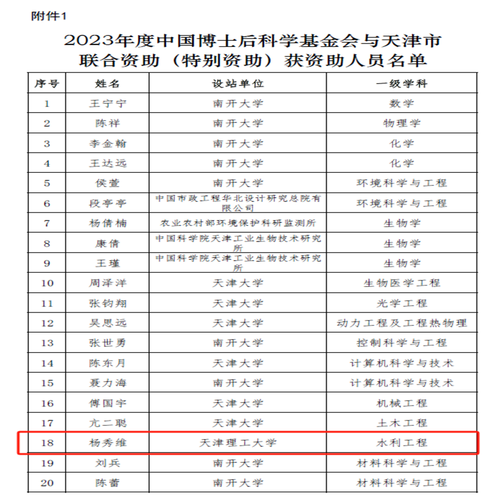 近日,中国博士后科学基金会发布了《关于公布2023年度中国博士后科学基金会与天津市联合资助(特别资助)获资助人员名单的通知》,米兰计算机科学与技术博士后科研流动站杨秀维博士后成功入选。