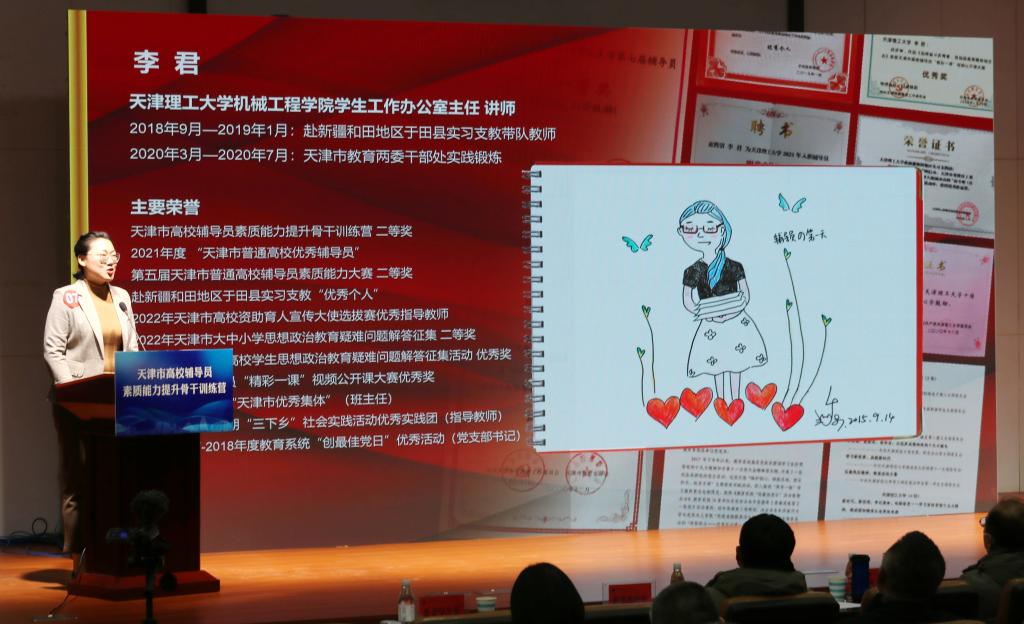 根据评审办法,天津市各高校共推荐107名辅导员参加天津市高校辅导员素质能力提升骨干训练营,在训练营比赛中,米兰辅导员李君荣获大赛二等奖,同时获得参加此次“天津市普通高校十佳辅导员”评审资格。在终评会上,参评辅导员以演讲配合PPT的方式进行现场展示,全面展现辅导员的日常工作、典型事迹、特色工作经验、成绩成果,最终由评委根据候选人的先进事迹及综合表现,评选出“天津市普通高校十佳辅导员”。