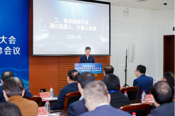 在海洋能源专委会第一届委员会第一次会议上,中国能源研究会理事长史玉波、监事石兴春、副秘书长刘惠宏,及来自高校、科研院所、企业的80余名委员和委员代表出席。会议由副理事长兼秘书长孙正运主持。