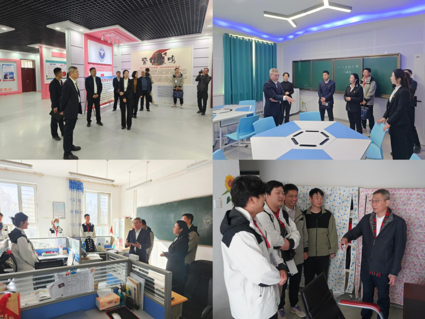 此外,杜长有一行与民丰县教科局相关负责同志前往驻地,悬挂校徽并为援疆支教主题文化墙揭幕。期间,相关领导为支教师生发放了防寒服等慰问物资,并实地调研走访驻地宿舍、食堂等,查看了周边配套设施,详细了解大家工作和生活环境,从衣食住行等各方面关心、关爱支教师生。
