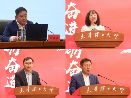 会上,天津市大学软件学院副院长、米兰兼职教授、创新创业学院常务副院长张建勇作了专题报告。马克思主义学院、教务处、党委学工部相关负责同志分别围绕学校思政课程建设、课程思政建设、学生思政教育等方面进行汇报交流。