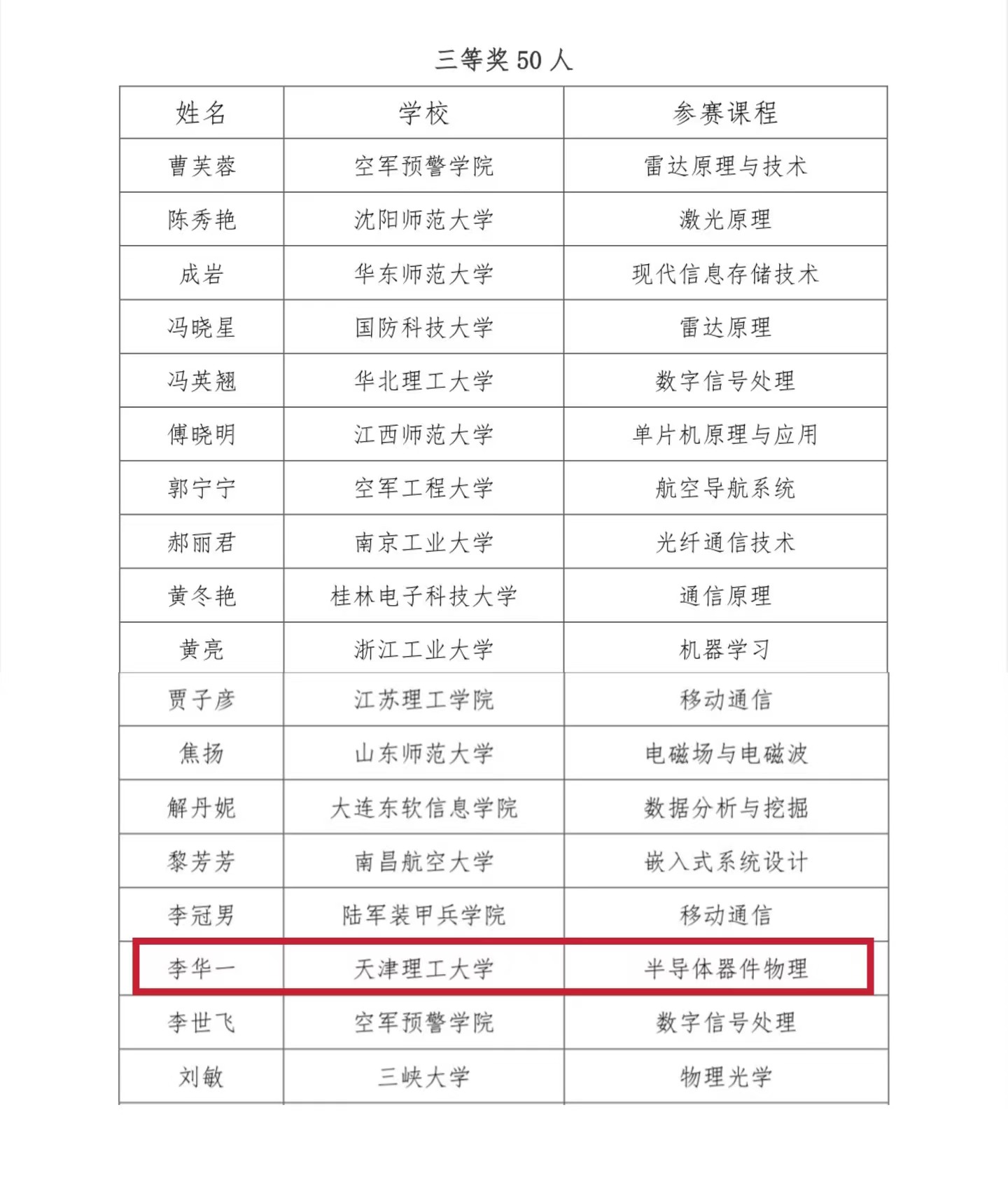 10月21日,全国高等学校电子信息类专业青年教师授课竞赛组委会发布《关于第七届全国高等学校电子信息类专业青年教师授课竞赛决赛结果公示》,米兰集成电路科学与工程学院教师李华一荣获三等奖。