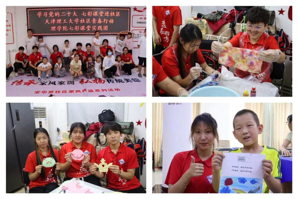实践团前往安华里社区、凌研里社区,将文化传承与心理健康教育相结合,在感受中华传统美德中帮助青少年消解不良情绪,释放心理压力。实践团以家风传承为主题,与社区青少年共“画”家风,在一笔一画中勾勒心中对于弘扬美好品德的展望,引导大家感恩父母、勇于表达,做向善向美的青少年。实践团还与社区青少年共同学习了非物质文化遗产剪纸与扎染的发展历史、制作步骤并化身“手艺人”将现代元素融进传统文化之中进行创作,在动手实践中感悟文化传承与创新。