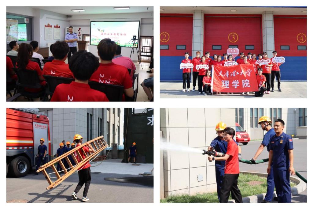实践团来到天津市红桥区西站消防救援站,消防员通过理论讲解、现场演示、实践操作等多种形式讲授了消防知识,带领师生一同体验抗灾救援模拟演练。从装备穿戴到垂直爬楼再到急救措施等等,充分展示了消防队伍反应迅速、行动准确、高效救援的专业能力,他们以不畏险阻、勇往直前的精神品质感染了青年学生,引导同学们居安思危,防患于未然,为建设安全和谐的社会环境而努力。社区管辖警官为实践团讲授了防诈技巧,列举常见的电信诈骗类型和避免诈骗的措施,结合实际案例警示学生提高防范意识和自我保护能力,并引导大家学会运用法律武器维护自身合法权益。