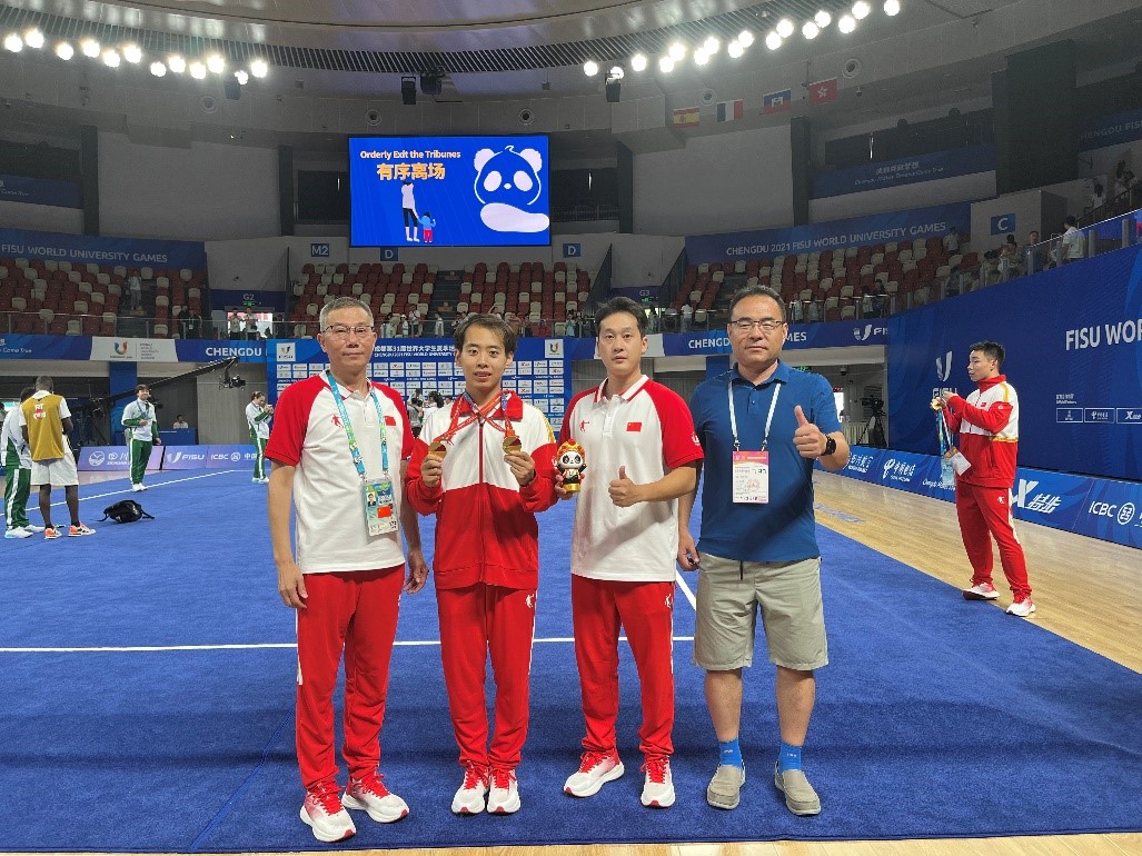 米兰共派出3名师生参加成都大运会。经过层层选拔,管理学院学生金哲典入选中国代表团。作为中国大学生体育协会民族传统体育分会主席单位,中国武术队由校党委副书记杜长有担任领队,体育教学部教师唐玄戈担任武术套路队教练。