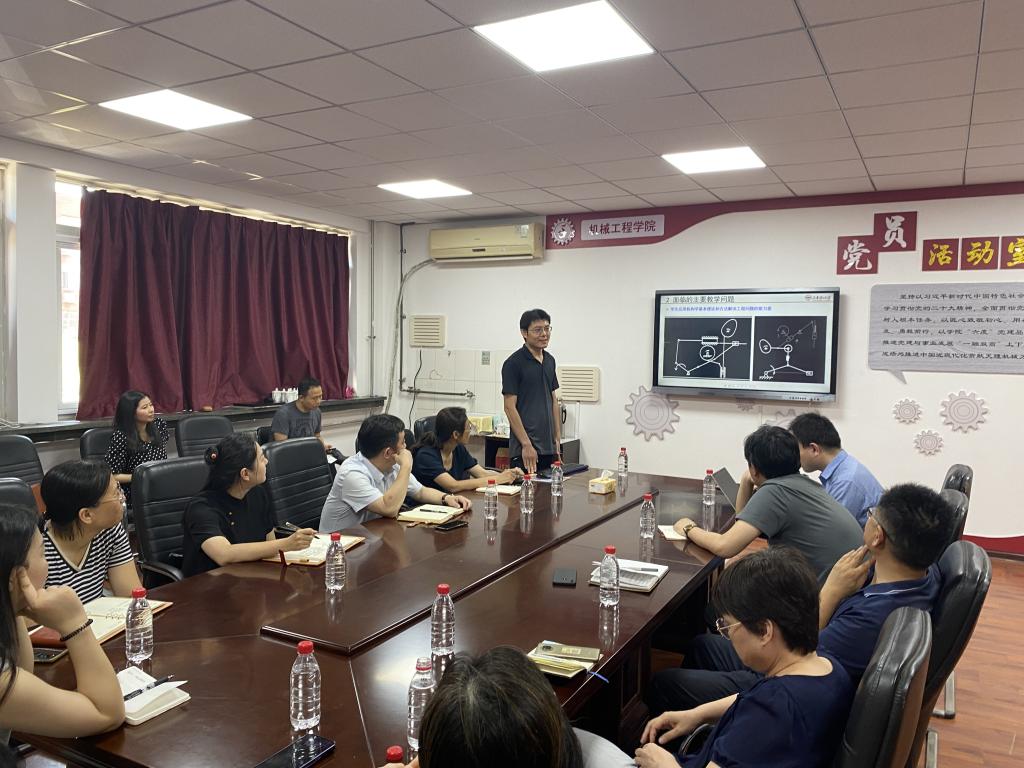 机械工程学院教师薛亚红和马文朋围绕教学资源建设、教学活动的设计、线上平台建设、虚仿实验等方面,依次介绍《工程制图》和《机械原理》两门国家级一流本科课程建设情况。计算机科学与工程学院教师杨淑莹基于国家级实验空间应用的《面向人工智能技术的视听感知控制机器人虚拟仿真实验》实验平台分享建设经验,戴敏就新形势下的课程建设分享自己对以学生为中心的一流本科课程教学的心得与感悟。随后,机械工程学院和计算机科学与工程学院负责同志分别汇报了两所学院在课程建设、人才培养和教研活动方面的规划。最后,两院教师围绕以学生为中心的教学理念解读、一流课程的教学设计与组织实施、开展教学活动的关键细节等方面各抒己见、畅所欲言,积极为专业课程建设出谋划策。