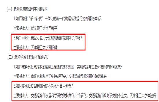 航海领域科学技术问题推选,着眼于国家战略科技力量和战略性新兴产业的科技问题,尤其是航海领域重大基础研究、关键共性技术、前沿引领科技、现代工程技术、颠覆性技术、“卡脖子”技术、科技攻关重点方向、促进可持续发展的科技等方向,包含航海技术与运输安全、船舶工程、航道与港口工程、智能航运、环保与节能等各相关领域。