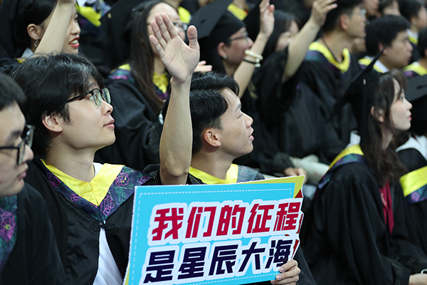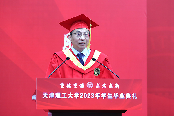 6月19日,学校2023届学生毕业典礼暨学位授予仪式在体育馆举行。校领导刘东志、练继建、杜长有、魏东、张继东、陈胜勇以及相关部门、各学院主要负责同志出席,并为获得学位的毕业生拨正流苏。2020-2022届校友以及2023届毕业生参加。毕业典礼由党委常委、副校长叶宁主持。