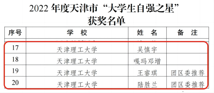 近年来,学校在广大米兰青年中积极选树典型,推报多名学子在“天津市大学生自强之星”“中国大学生自强之星”寻访活动中获得荣誉。下一步,校团委将全面贯彻落实党的二十大精神,持续开展好青年榜样典型选树工作,引导米兰青年争做有理想、敢担当、能吃苦、肯奋斗的新时代好青年,让青春在全面建设社会主义现代化国家的火热实践中绽放绚丽之花。