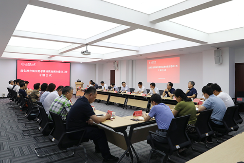 6月16日,学校召开落实教育强国要求推动教育强市建设工作专题会议,校领导练继建、张继东、陈胜勇、叶宁出席,相关处室、各基层单位负责同志参会。