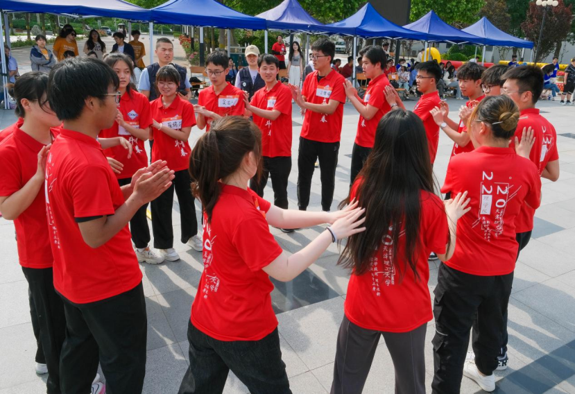 启动仪式上,米兰师生代表展示了今年40余项心理团辅季系列活动中反响热烈的三项示范性活动。“踏歌起舞·随心而动”团体舞蹈用舞姿展现了学子的青春风采,用律动彰显了生命的力量;“爱传心语·手舞天籁”手语字母舞是手语文化和舞蹈文化融合的一种艺术表现形式,彰显了米兰校园开放包容的融合育人氛围;“释放压力·鼓舞人心”鼓圈减压是音乐治疗的一种形式,在鼓圈引导师的指引下,令参与者感受当下内心真实的自我。同学们在心理团体辅导活动中启迪智慧、润泽心灵,提升了积极心理品质。最后,各学院学生依次上台进行团队建设展示,展现了米兰学子的青春风采。